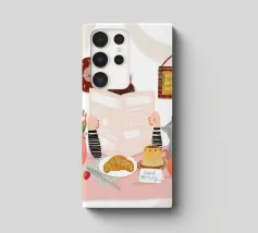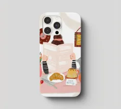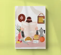 breakfast table newspaper clock flowers vase croissant coffee coffee-pot mug cup orange strawberries plate napkin note decor home time kitchen