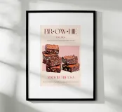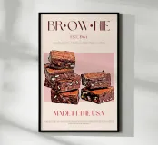Set on a neutral, cream background, this elegant illustration of the sweet treat brownies adds sophistication to any kitchen, cafe or dining area. This minimalist yet informative design will spark conversation in any setting, adding a refined touch to your environment.