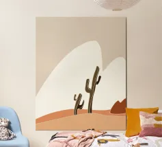 This illustration features cacti with a minimalist style, using a combination of blue, orange, and dark green colors. This illustration provides a calm and exotic look.
