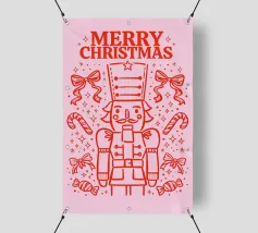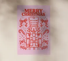 This cheerful nutcracker marches across a pink candy-coated world, surrounded by bows, sparkles, and sugar treats. A whimsical twist on a timeless classic.