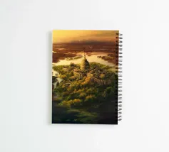 Painting of US Capitol ruins in postapocalyptic Washington DC, USA.