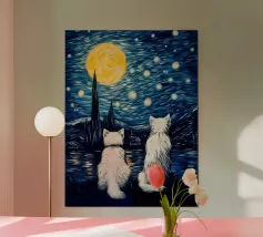 cats moon night companionship silhouette sky stars fur tails sitting animals friendship orange cat black cat texture reflection bright moon back view togetherness stargazing