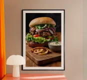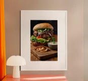 Elevate your space with the whimsical charm of our “Cheeseburger” art print by 🎁 NOBELART. This delightful wooden framed print is perfect for food lovers, kitchen décor enthusiasts, or anyone looking to add a playful touch to their home. The vibrant, mouthwatering design captures the essence of indulgent burgers, making it a standout piece in your dining area or game room. It’s not just a piece of art; it’s a conversation starter! Perfect for casual settings, this print also makes a fantastic gift for friends and family who share your love for gourmet burgers. Whether you're a chef at heart or simply enjoy a good meal, this print will surely add flavour to your walls.