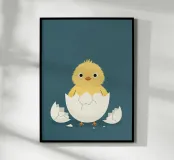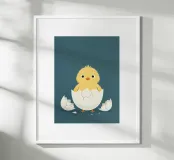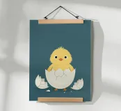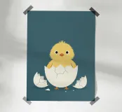 illustration d'un poussin qui sort de sa coquille , parfait pour une chambre d'enfant