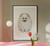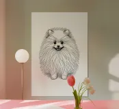 Pomeranian Dog Line Art Drawing poster