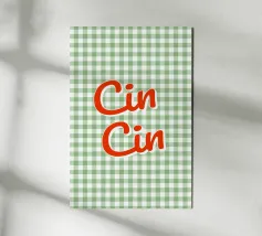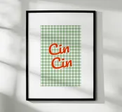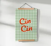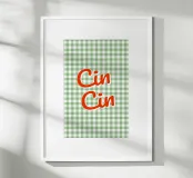 Enhance your kitchen decor with our charming 'Cin Cin' wooden framed art print. Featuring a delightful retro aesthetic with a playful design, this wall art brings a touch of warmth and cheer to your culinary space.