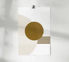 "Circle" is a minimalist, modern art print that radiates calm and elegance with warm gold and ochre tones. The abstract circle with clear, graphic lines brings timeless mid-century vibes to any home - simple, high-quality and perfect for interior lovers who like art with structure and warmth. Ideal for living rooms, hallways or creative workspaces. Keywords: abstract art, circle print, mid-century poster, geometric, warm gold, minimalist design, Froilein Juno.