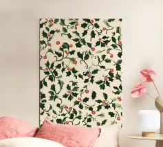 Vintage christams pattern, classic winter colors and hand drawing winter plant.