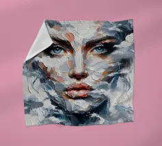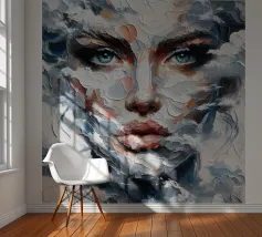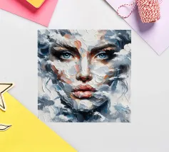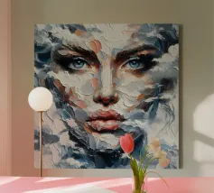Painting of woman with clouds around her.