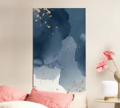 Quick cobalt streaks break with bold golden accents in painterly intensity.
