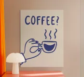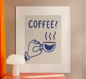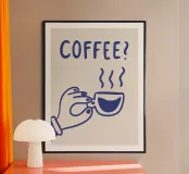 Elevate your kitchen decor with this minimalist 'Coffee?' poster by we line studio - art. Ideal for coffee lovers, this artwork brings a playful touch to your space, making it a perfect conversation starter for any kitchen or cafe.