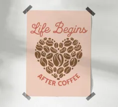 White sketches of coffee beans are scattered light Below the beans, the words "COFFEE CORNER" are prominently displayed brown leitters.