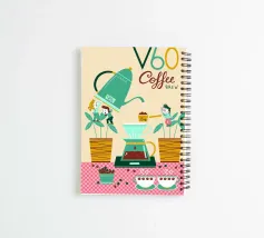 coffee filter pour-over v60 coffee kettle beans cups carafe plants serving measurement brewing scale liquid leaves pattern tablecloth wood texture typography animated characters