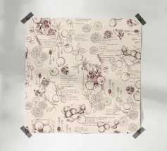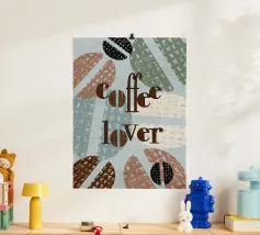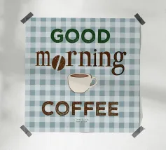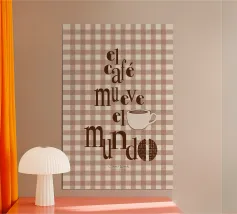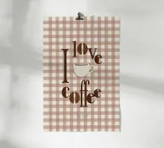 Different coffee quotes art pattern in brown tones on a linen textured cream background.