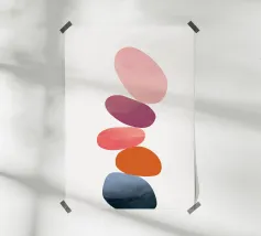 Three oval colour areas in pink, yellow and orange form a calm, balanced composition. The modern poster looks friendly, light and structured at the same time - perfect for interiors with a clear design language and a positive colour effect. Ideal for creative studios, living rooms or as a statement in minimalist surroundings.