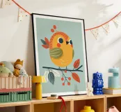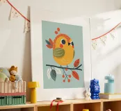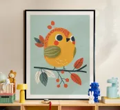 Colorful and Playful Robin Perched on a Branch with Autumn poster