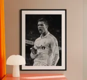 Celebrate your love for football with this striking minimalist poster featuring Cristiano Ronaldo in action. Ideal for bedrooms, sports rooms, or a man cave, this artwork captures the passion and intensity of the game. A perfect addition for fans looking to elevate their decor!