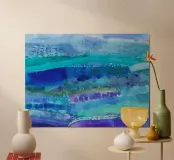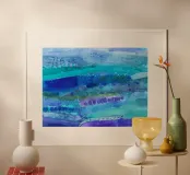 An abstract seascape composed of layered blues, violets, and aquas—this piece evokes the quiet rhythm of ocean currents and shifting tides. With textural accents and subtle dotwork, it brings a sense of depth and movement to modern coastal interiors, ideal for gallery walls, studios, or spa-inspired spaces.