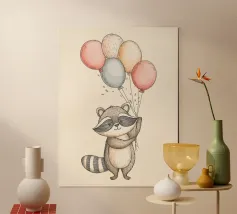 Cute Raccoon Holding Balloons poster