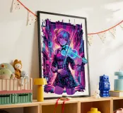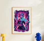 Immerse yourself in the vibrant glow of a cyberpunk city with this stunning anime illustration of a girl playing a neon-lit violin. The futuristic cityscape comes alive with electric pinks and blues, creating a mesmerizing fusion of music and technology. Perfect for anime fans, sci-fi enthusiasts, and anyone who loves unique, neon-drenched artwork.
