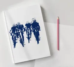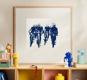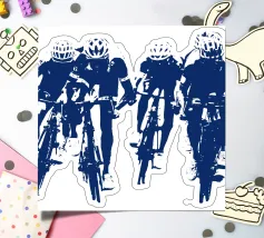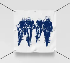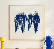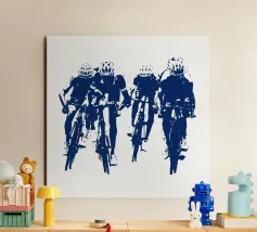 Experience the dynamic energy of a group of cyclists in this Banksy-style drawing. Bold stencils and striking contrasts capture the essence of movement and urban street art