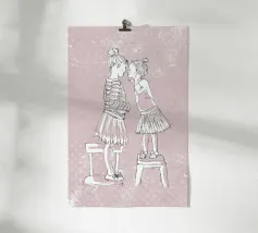 In a little house in beautiful Bordeaux (South-West of France) Cécile Valletoux Amey, aka La belette rose, creates art. Passionate about drawing from a young age, she learned everything about painting and design from her talented grandfather. She is a self-described Jack of All Trades with a colourful career, having worked as a university professor, a publicist and a journalist before returning to her first love. Her artwork is bright and playful and is inspired by the little things that give us joy.