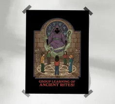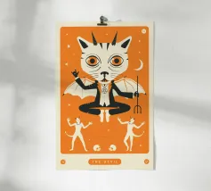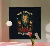 A group of hooded cultists stands in a dark ritual circle, accidentally summoning an adorable orange kitten instead of a fearsome demon. This design hilariously mixes the spooky aesthetic of dark magic with the unexpected cuteness of a floating cat. Perfect for cat lovers, goth geeks, and anyone who appreciates a bit of chaos.