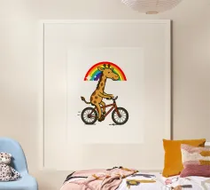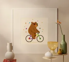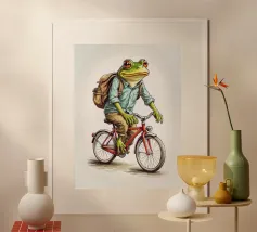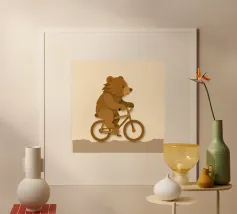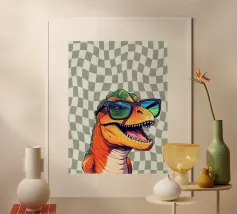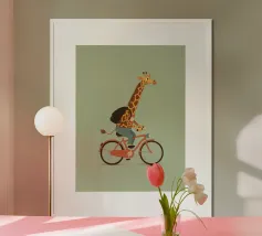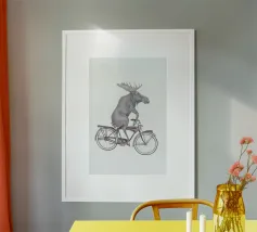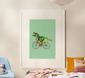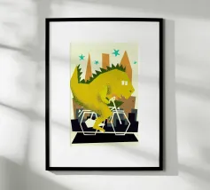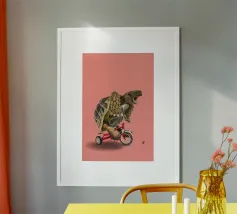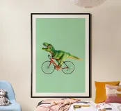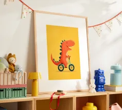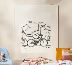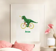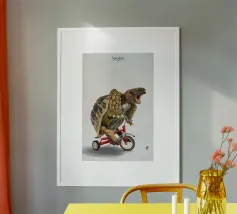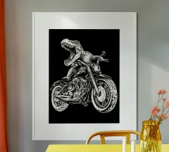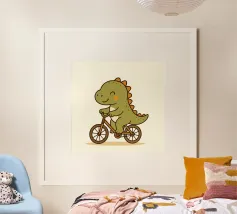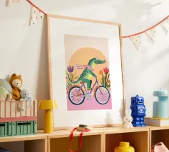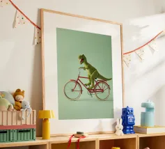 Dino Bike poster with wooden frame