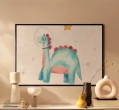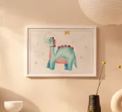 Bring a touch of whimsy to your home with the adorable "Dinosaur" art print by 🎁 NOBELART. Perfect for children's rooms, nurseries, or any space that needs a splash of colour, this charming piece showcases a cute dinosaur in soft, playful hues. Featuring a friendly design, it’s ideal for sparking the imagination of little ones while adding joy to any wall. The print is framed in a sleek wooden frame that complements the artwork beautifully and makes it an effortless addition to your decor. Whether you're redecorating a kid's room or looking for the perfect gift for a baby shower, this art print is sure to delight both adults and children alike. Make your space fun and inviting with this delightful dinosaur design!
