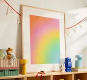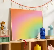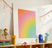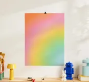 A soothing and dreamy rainbow gradient where soft candy hues blend effortlessly from orange to pink, yellow, green, and blue. This abstract artwork radiates positivity and optimism, creating a sense of calm and joy. Perfect for brightening any space with a gentle yet uplifting touch of colour.