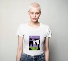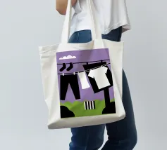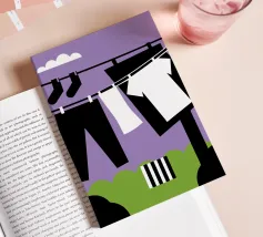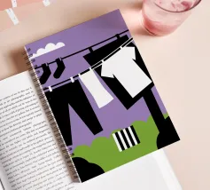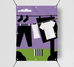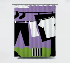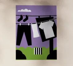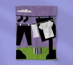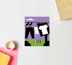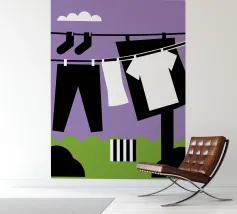 This "Drying Clothes" design offers a modern and colorful illustration of the clothes drying process.
