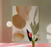 Earthen Bloom is an elegant exploration of organic forms in warm, muted tones of clay, ochre, and sage. The abstract floral shapes evoke a quiet connection to nature, perfect for spa settings, wellness spaces, or interiors that seek a soothing, earth-inspired ambiance.