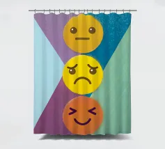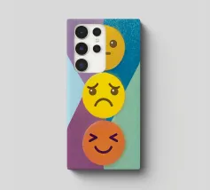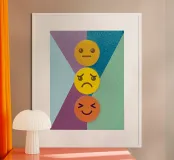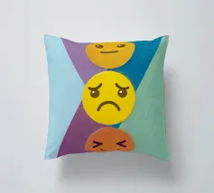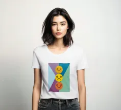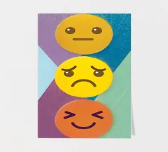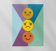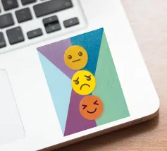 Cheerful illustration featuring a stack of emojis with various face expressions, radiating a spirit of diversity, honesty, and openness in expressing emotions.