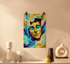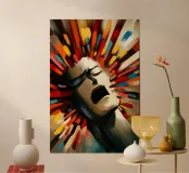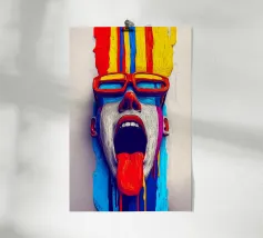 An intense moment of liberation or madness - this expressive artwork shows a face exploding with energy, emotion and chaos. The dynamic, vibrant strokes of colour bursting from the head symbolise creative explosion, pain or enlightenment. The dramatic expression and bold painting style captivate the viewer's gaze and invite interpretation. An impressive piece for lovers of modern, abstract art.
