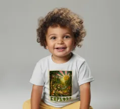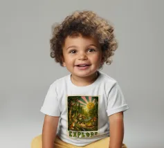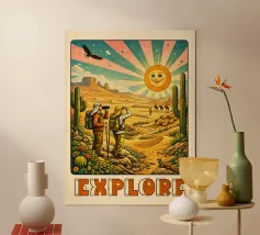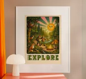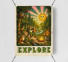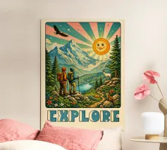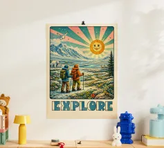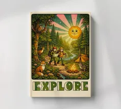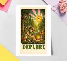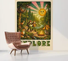 Immerse your child in the wonders of nature with our enchanting 'Exploring the Forest' poster, featuring two adventurous kids exploring a vibrant wilderness. Perfect for inspiring imagination and adventure in any children's space.