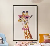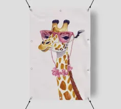 Stylized illustration of a charismatic giraffe with oversized sunglasses, jewelry and a self-assured pose. With its vibrant palette and touch of fabulous flair, this artwork celebrates individuality, style, and unapologetic confidence.