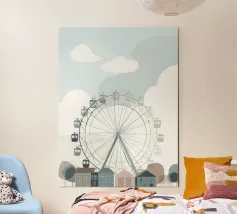 Bring a touch of whimsy to your space with this charming "Ferriswheel" art print by Catherine McDonald. Perfect for anyone who loves a nostalgic vibe or the joyful atmosphere of amusement parks, this wooden framed print is an eye-catching addition to any room. Its playful design works beautifully in living rooms, bedrooms, or playful nurseries, making it a versatile piece for any decor style. The cheerful colours add a lively pop to your wall, ensuring it draws attention and sparks conversation. Whether for personal use or as a thoughtful gift, this print offers a delightful reminder of carefree days and laughter. Plus, its compact size makes it easy to fit into any arrangement, from gallery walls to desk displays. Enjoy a little fun every day with this stunning piece of art!