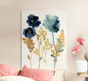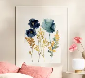 A minimalist watercolor study of wild botanicals in deep indigo, sage, and ochre. This sparse composition celebrates the elegance of negative space and the rich tonal shifts of wet-on-wet painting.