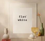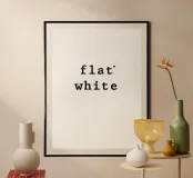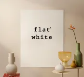 Love to drink flat white coffee. Typography in black and (transparent) white. You can change the background color. Minimalistic typography poster.