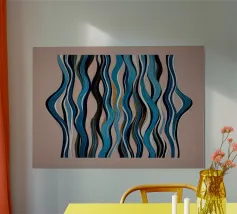 A bold abstract pattern with a touch of dynamic energy that symbolises movement and fluidity. Bright colours to evoke themes such as water, life and movement. An innovative fusion of tradition and modernity for contemporary, minimalist interiors. A unique visual language that transcends cultural boundaries.