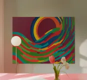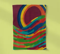 A bold abstract pattern with a touch of dynamic energy that symbolises movement and fluidity. Bright colours to evoke themes such as water, life and movement. An innovative fusion of tradition and modernity for contemporary, minimalist interiors. A unique visual language that transcends cultural boundaries.