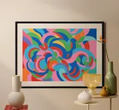A bold abstract pattern with a touch of dynamic energy that symbolises movement and fluidity. Bright colours to evoke themes such as water, life and movement. An innovative fusion of tradition and modernity for contemporary, minimalist interiors. A unique visual language that transcends cultural boundaries.