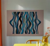 A bold abstract pattern with a touch of dynamic energy that symbolises movement and fluidity. Bright colours to evoke themes such as water, life and movement. An innovative fusion of tradition and modernity for contemporary, minimalist interiors. A unique visual language that transcends cultural boundaries.