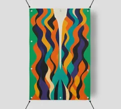 A bold abstract pattern with a touch of dynamic energy that symbolises movement and fluidity. Bright colours to evoke themes such as water, life and movement. An innovative fusion of tradition and modernity for contemporary, minimalist interiors. A unique visual language that transcends cultural boundaries.