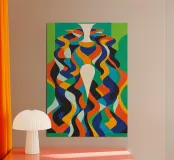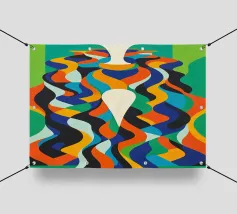 A bold abstract pattern with a touch of dynamic energy that symbolises movement and fluidity. Bright colours to evoke themes such as water, life and movement. An innovative fusion of tradition and modernity for contemporary, minimalist interiors. A unique visual language that transcends cultural boundaries.