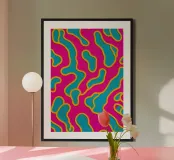 A bold abstract pattern with a touch of dynamic energy that symbolises movement and fluidity. Bright colours to evoke themes such as water, life and movement. An innovative fusion of tradition and modernity for contemporary, minimalist interiors. A unique visual language that transcends cultural boundaries.