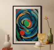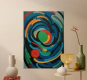 A bold abstract pattern with a touch of dynamic energy that symbolises movement and fluidity. Bright colours to evoke themes such as water, life and movement. An innovative fusion of tradition and modernity for contemporary, minimalist interiors. A unique visual language that transcends cultural boundaries.