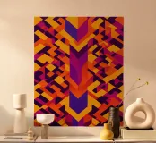 Une création de Laurent Prades. © Atelier-88 - Paris Un motif abstrait audacieux avec une touche d'énergie dynamique qui symbolise le mouvement et la circulation. Des couleurs vives pour évoquer des thèmes tels que le soleil, la vie, et l'énergie. Une fusion innovante entre constructivisme et modernité pour des intérieurs contemporains et minimalistes. Un langage visuel unique qui transcende les frontières culturelles.