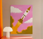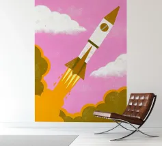 Launch into Space Adventure! The "Flying Rocket" collection features a rocket design soaring into space.