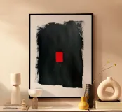 "Focus" is a minimalist statement. The bold black surface is broken up by a central, intense red - a symbol of concentration, clarity and inner strength. This work magically draws the eye and reminds us that true strength often lies in tranquillity. Perfect for rooms where you want to feel inspiration and determination - whether in the office, studio or living room.